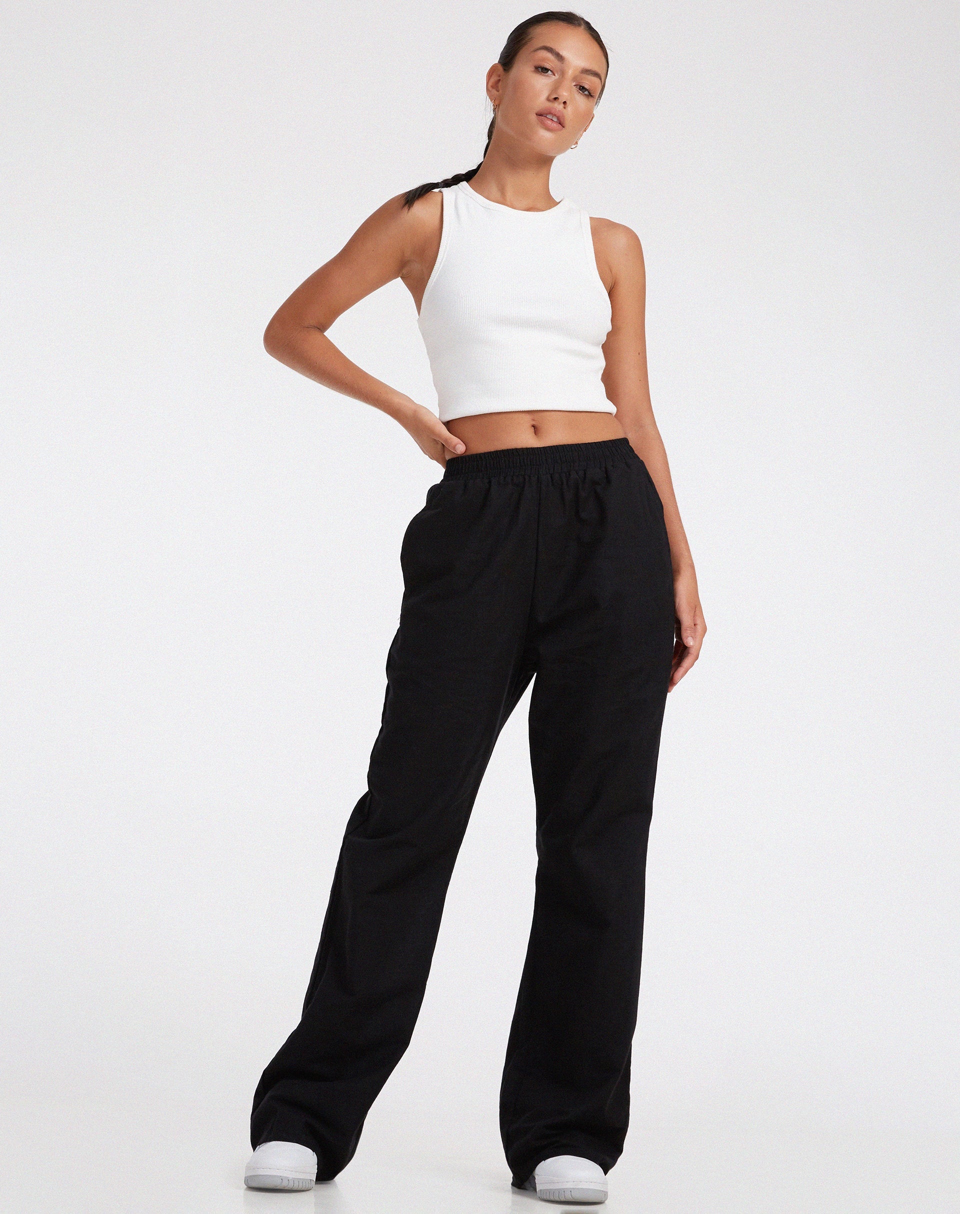 Semplificate lo stile con i nostri pantaloni Yara pantaloni. Caratterizzati da una vestibilità a vita alta, gamba ampia e fascia elastica in vita, in nero. Ci piace abbinarli con il nostro Top Leah in bianco.
